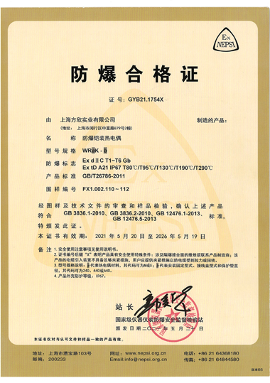熱電偶隔爆證書