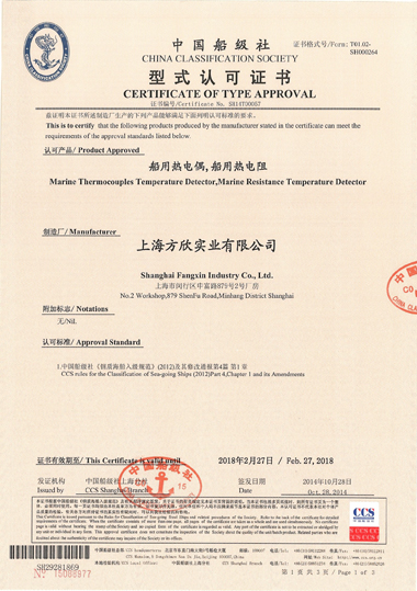 中國船級社型式認可證書